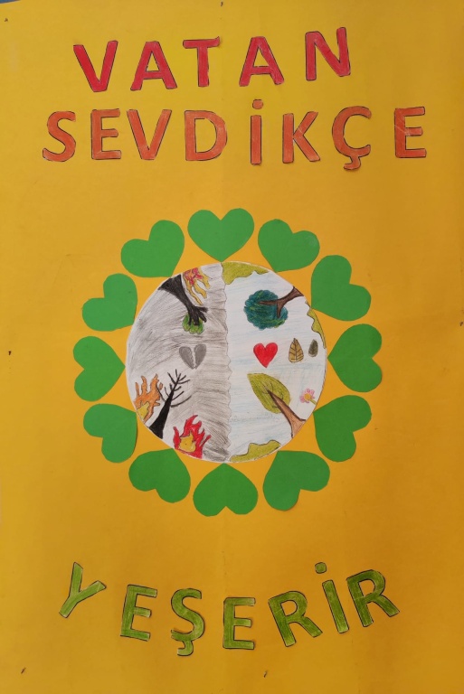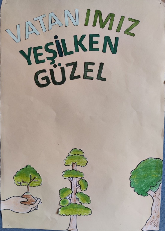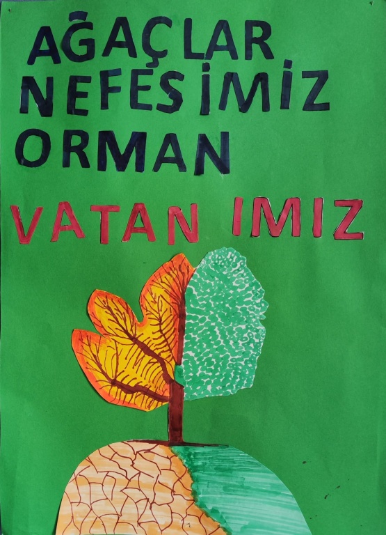 2025- 2026 eğitim öğretim yılının ilk haftasında öğrencilerimizin "Yeşil Vatan" kavramını tanımaları, doğa sevgisi ve çevreyi koruma bilincini pekiştirmeleri, ormanlar konusunda yapılan çalışmalara değer vermeleri ve sürdürülebilir bir yaşam için Yeşil Vatan'ın önemini fark etmeleri amacıyla görsel sanatlar öğretmenimiz Hatice Serap KOrkmaz rehberliğinde farklı etkinlikler yapılmıştır.